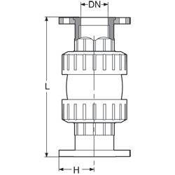 PVC-U Ball check valve, double union, with DIN* flanges